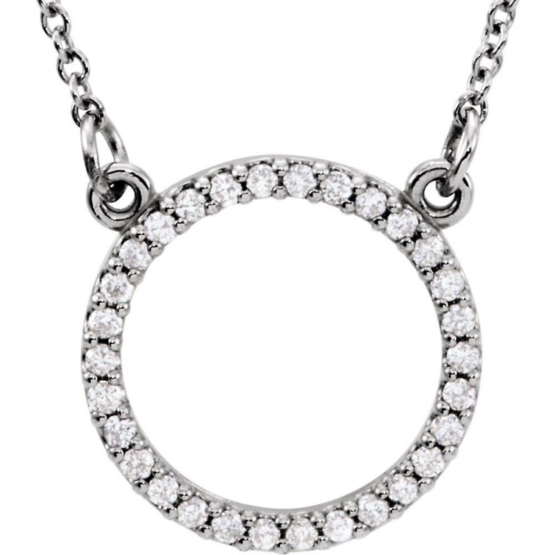 Collier en or blanc 14 carats 0,17 Dwt poli 1/6 Dwt avec cercle de diamants 16 pouces Bijoux Cadeaux